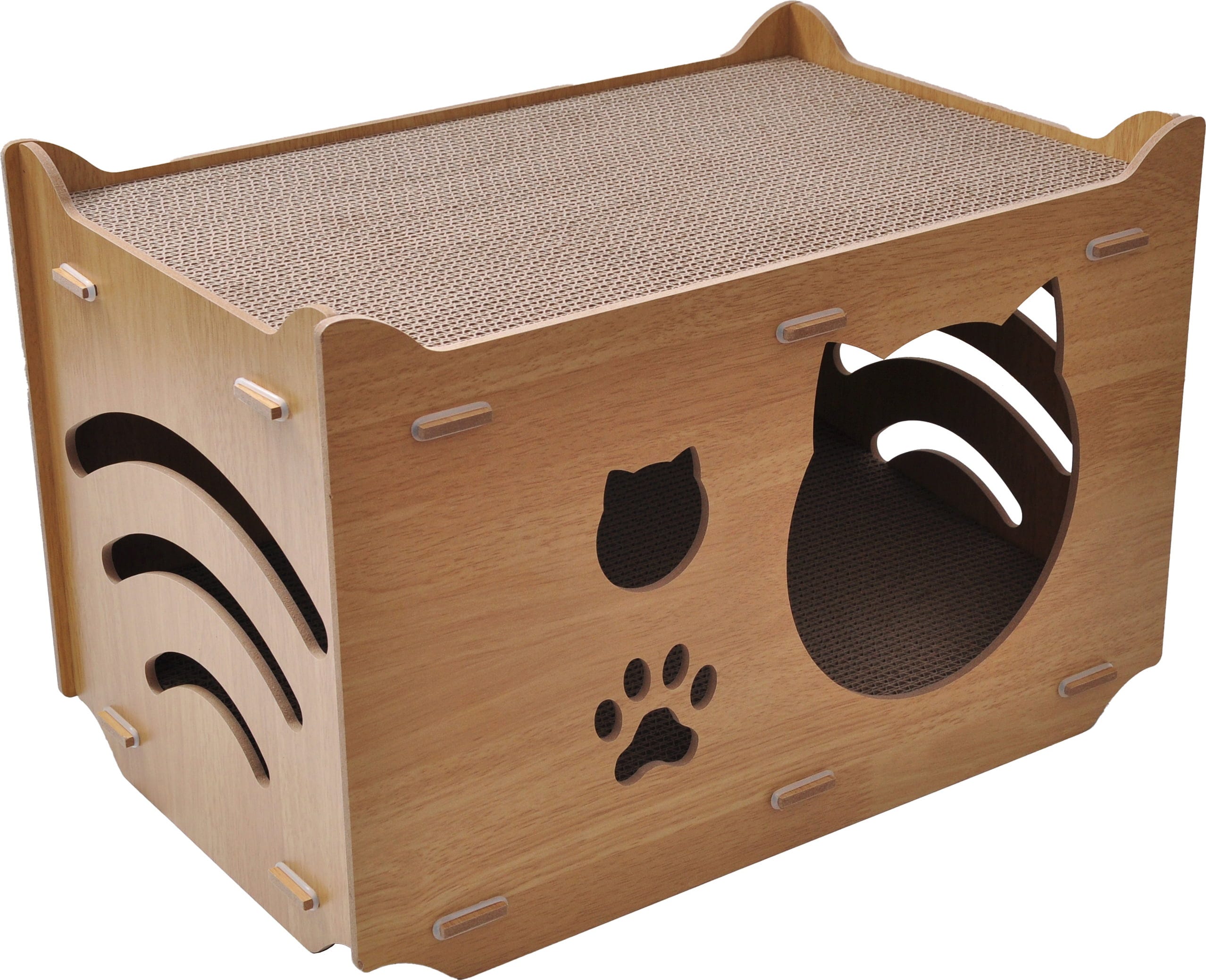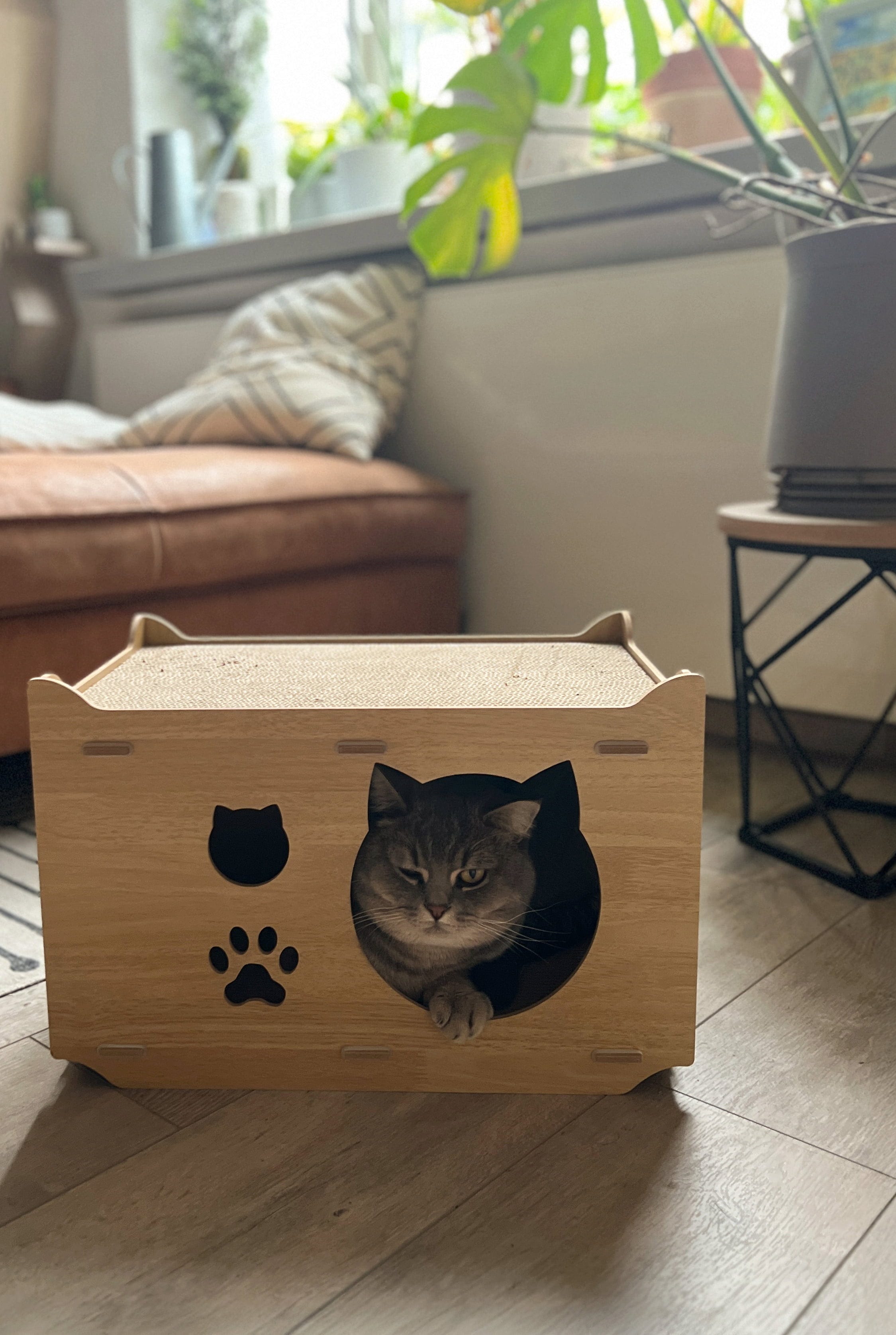 Spielen, Ausruhen, Krallen schärfen - all das ist in diesem dekorativen Katzenhaus möglich. Die Stanzungen an den Seiten sorgen für eine optimale Belüftung, sodass sich deine Samtpfote rundum wohlfühlt und ihre verdiente Ruhe in vollen Zügen genießen kann.
