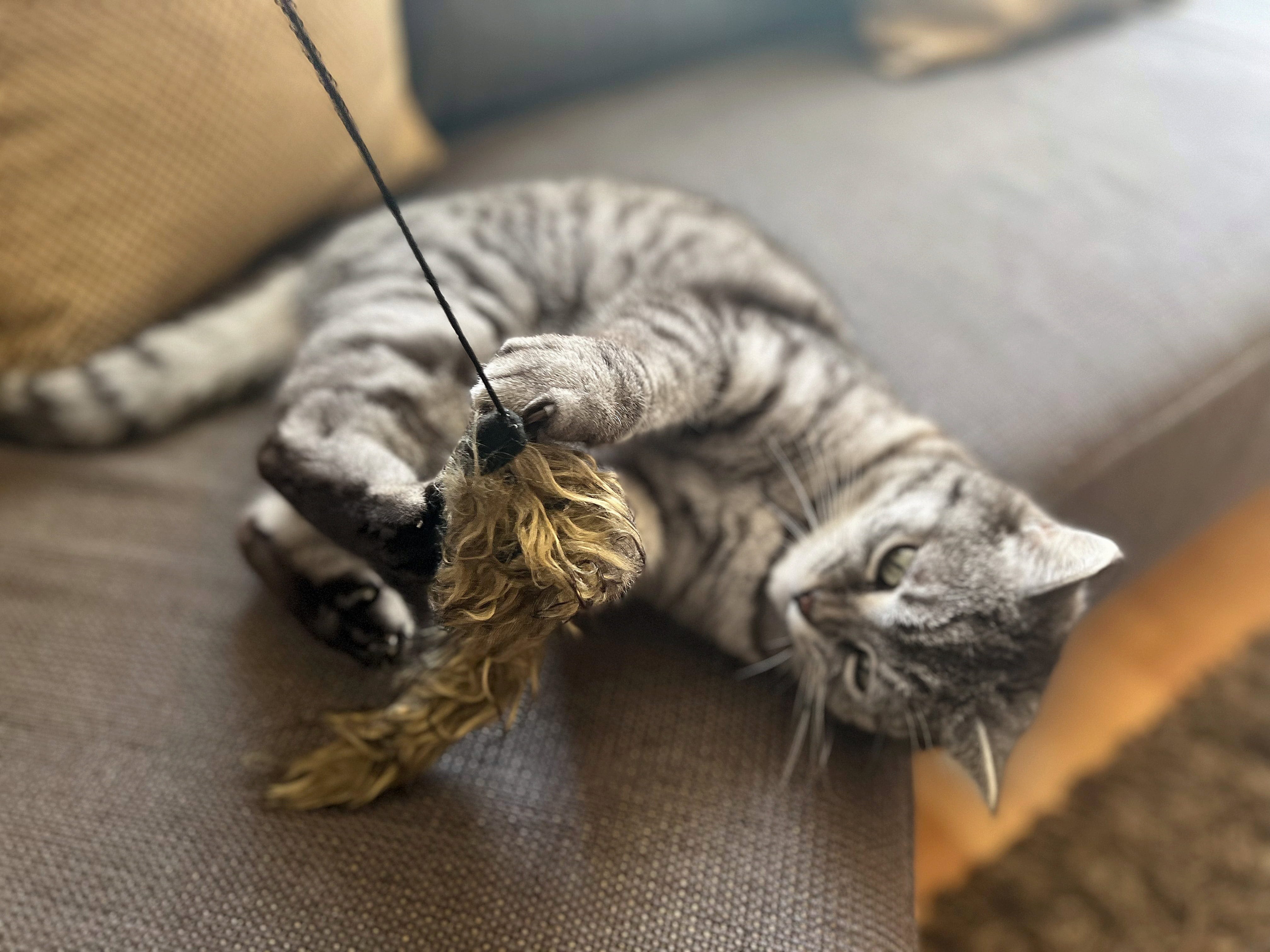 • Robuste Katzenangel mit Wuschel-Frettchen