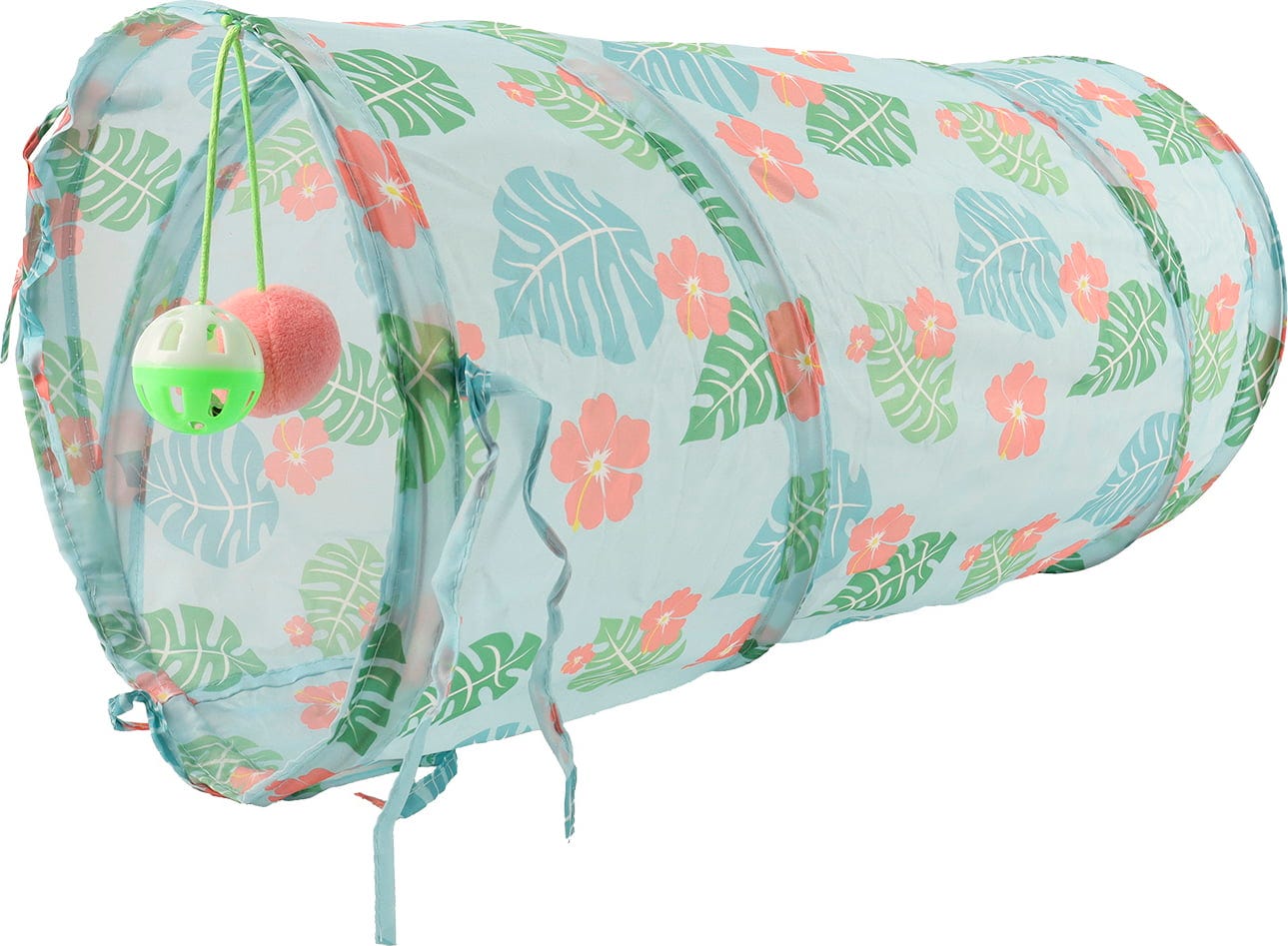 Biete deiner Samtpfote mit diesem schönen Modell stundenlangen Spielspaß beim Versteckspielen oder auch einen gemütlichen Ort für ein wohlverdientes Nickerchen. Sanfte Farben und ein tropisches Muster bringen einen Hauch von Urlaubsstimmung in dein Zuhause und regen gleichzeitig den Spieltrieb deiner Katze an.