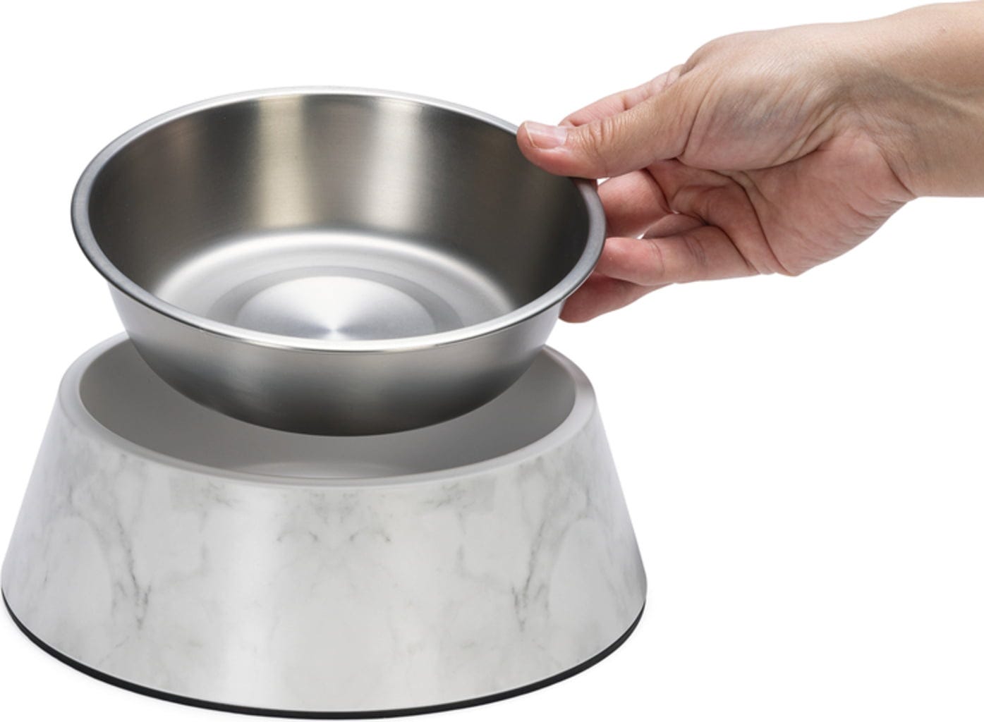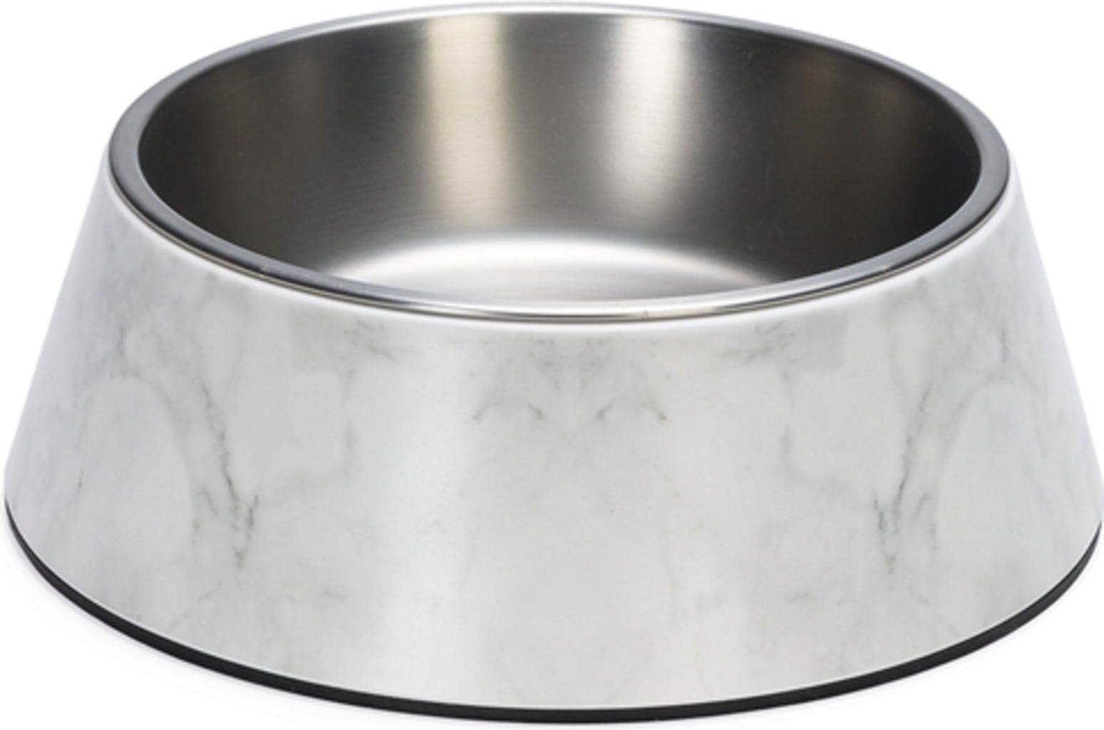 Dieser stylishe Hundenapf begeistert mit seiner luxuriösen Marmor-Optik und ist ein echter Eyecatcher in jedem stilvollen Hundehaushalt. Der herausnehmbare Innennapf aus mattiertem Edelstahl sieht nicht nur edel aus, sondern ist auch praktisch sowie hygienisch. Die Anti-Rutsch-Beschichtung an der Unterseite verhindert Verrutschen und sorgt dafür, dass der Napf immer dort bleibt, wo er hin gehört.