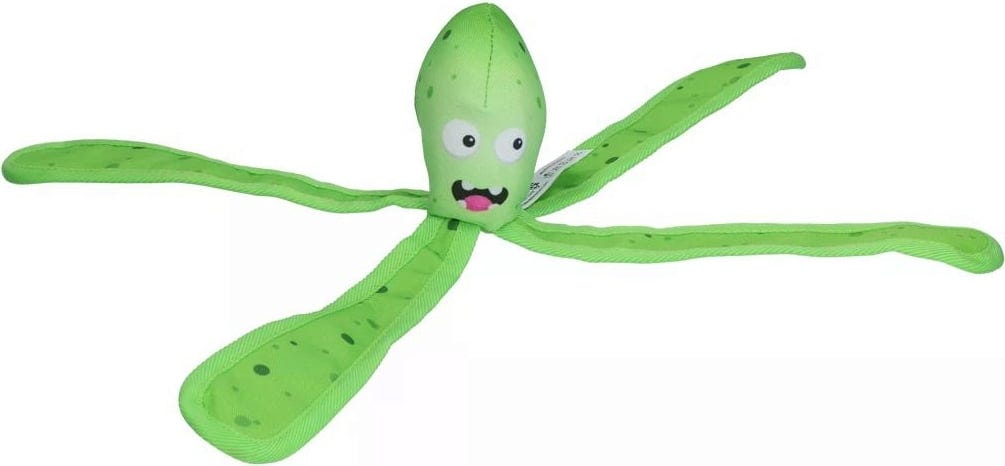 Dieser lustige Kerl in leuchtendem Grün bringt intergalaktischen Spielspaß zu dir nach Hause und begeistert mit knisternden Armen sowie einem quietschenden Kopf. So regt er sowohl im Trockenen als auch im Wasser den natürlichen Spieltrieb deines Hundes an und sorgt für willkommene Abwechslung in eurem Alltag.