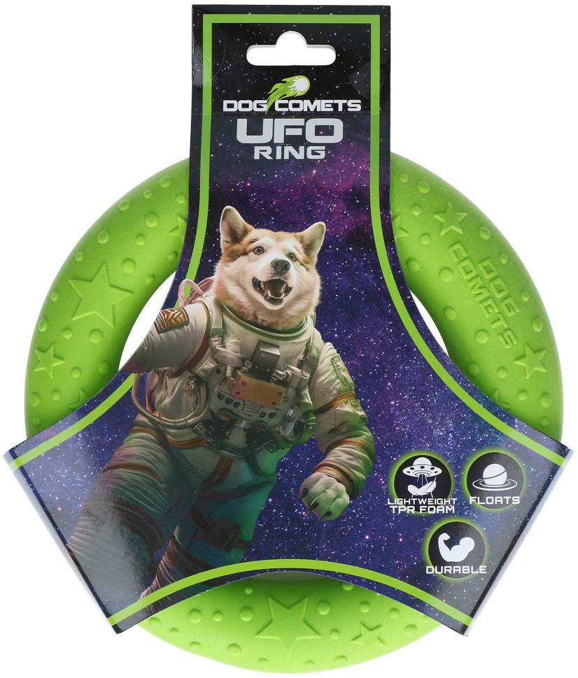 Es fliegt, es fliegt, es fliegt - ein UFO! Dieser Wurfring sorgt für intergalaktischen Spielspaß und macht deinem Hund so richtig Beine. Ob auf dem Land oder im Wasser, hier kann kein Hund ruhig bleiben.