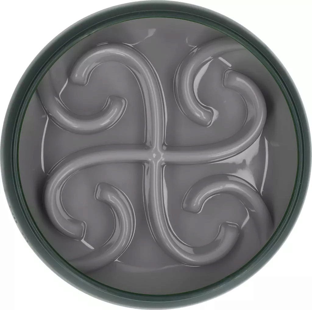 - Mit speziellem Spiralmuster, das schnelles Fressen und Schlingen verhindert