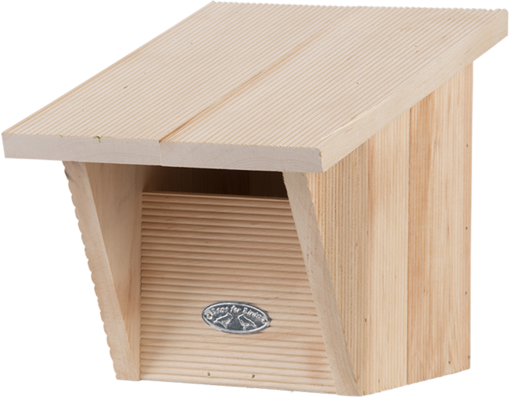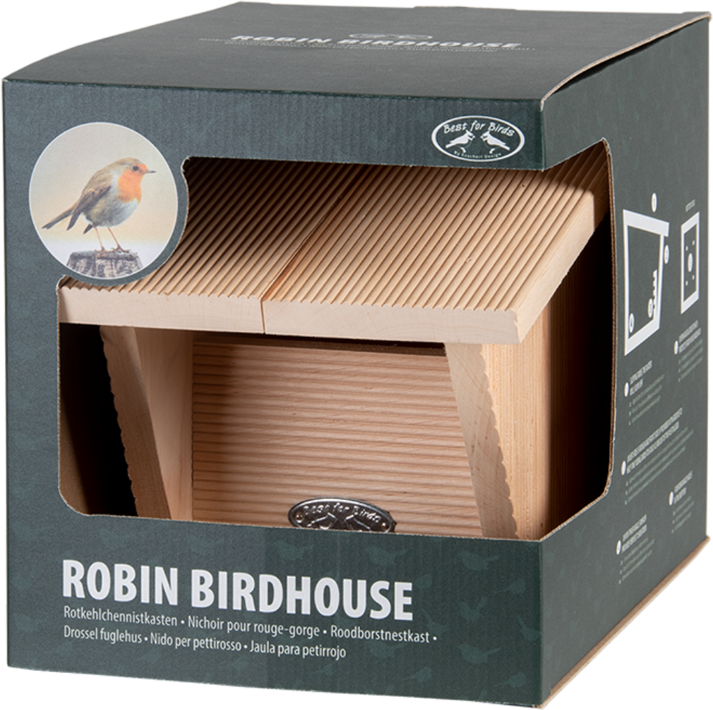 Der aus Erlenholz gefertigte Nistkasten ist der ideale Ort für Rotkehlchen, um ihren Nachwuchs aufzuziehen sowie im Winter einen sicheren Unterschlupf zu finden. Mit seinem schrägen Dach und den dicken Wänden schützt der Nistkasten perfekt vor Regen, Wind und frostigen Temperaturen. Im Sommer sorgen Lüftungsöffnungen dafür, dass es zu keinem Hitzestau kommt. Auch an die Jungvögel wurde gedacht, denn mit den angerauten Innenseiten und den Rillen an der Vorderseite können diese leicht aus dem Kasten herausklettern.