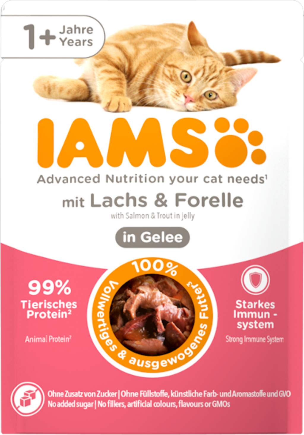 Erfahrungsberichte in Deutsch für IAMS Nassfutter für Katzen ab 1 Jahr mit Lachs und Forelle in Gelee