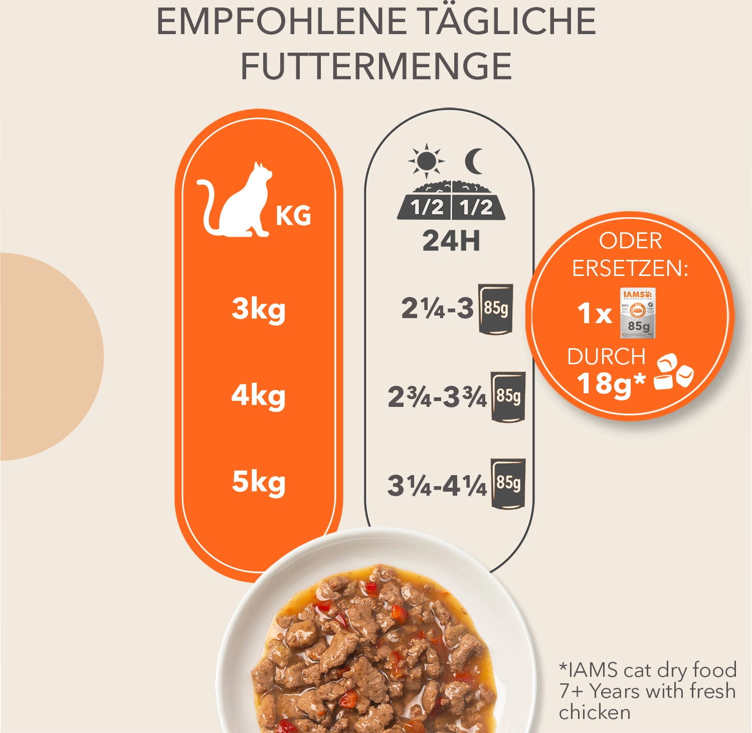 - Bei einer Umstellung auf IAMS Katzenfutter empfehlen wir eine schrittweise Einführung über 4 Tage.