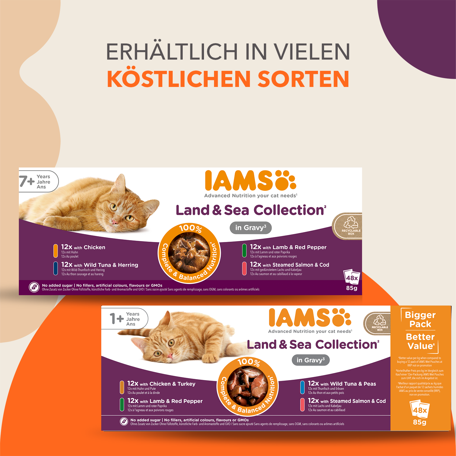 IAMS Nassfutter Land- & Meereskollektion in Sauce für Katzen ab 1 Jahr, 48x85g (4.080 g)