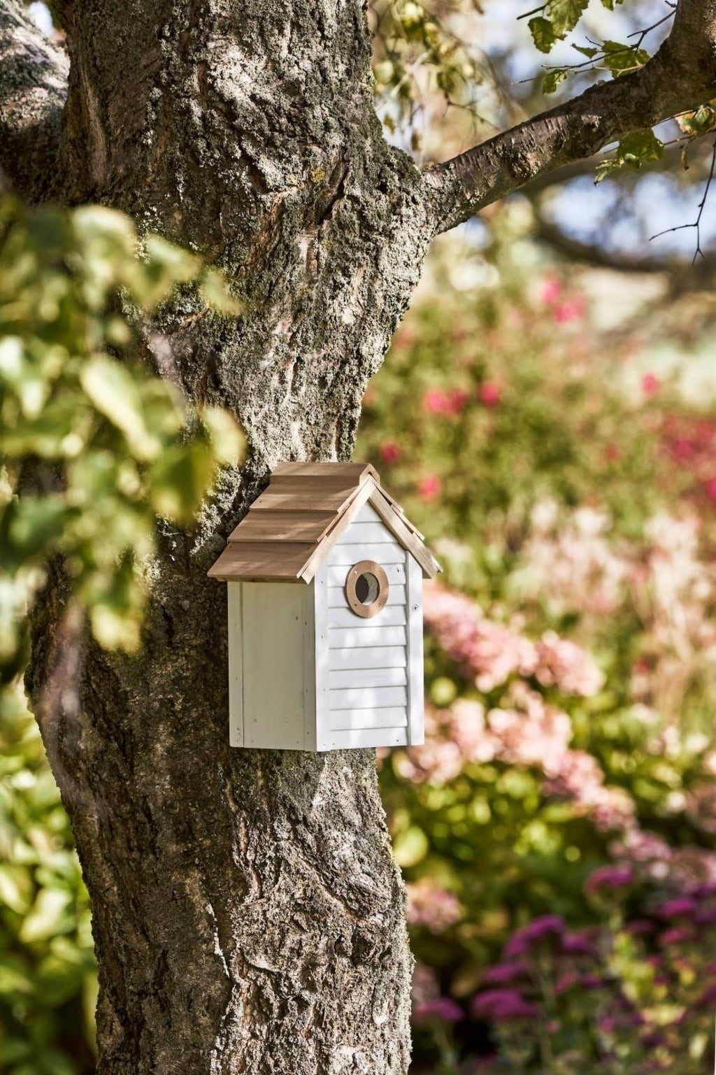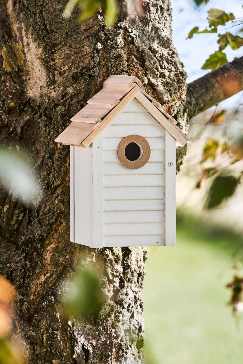 Dieses Vogelhäuschen ist mit seiner stilvollen Cottage-Optik ein ganz besonderer Hingucker in deinem Garten und bietet kleineren Vögeln einen sicheren Nistplatz.