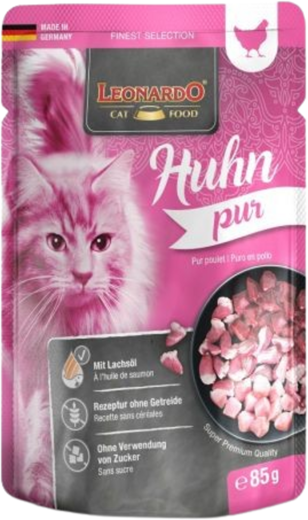 Frisches, saftiges Fleisch und leckere Innereien vom Hühnchen machen dieses köstliche Nassfutter zu einem echten kulinarischen Höhepunkt für Katzen-Gourmets! Mit Sorgfalt ausgewählte Zutaten werden im Portionsbeutel gegart und mit wertvollem Lachsöl verfeinert. Ein Katzentraum im Futternapf!