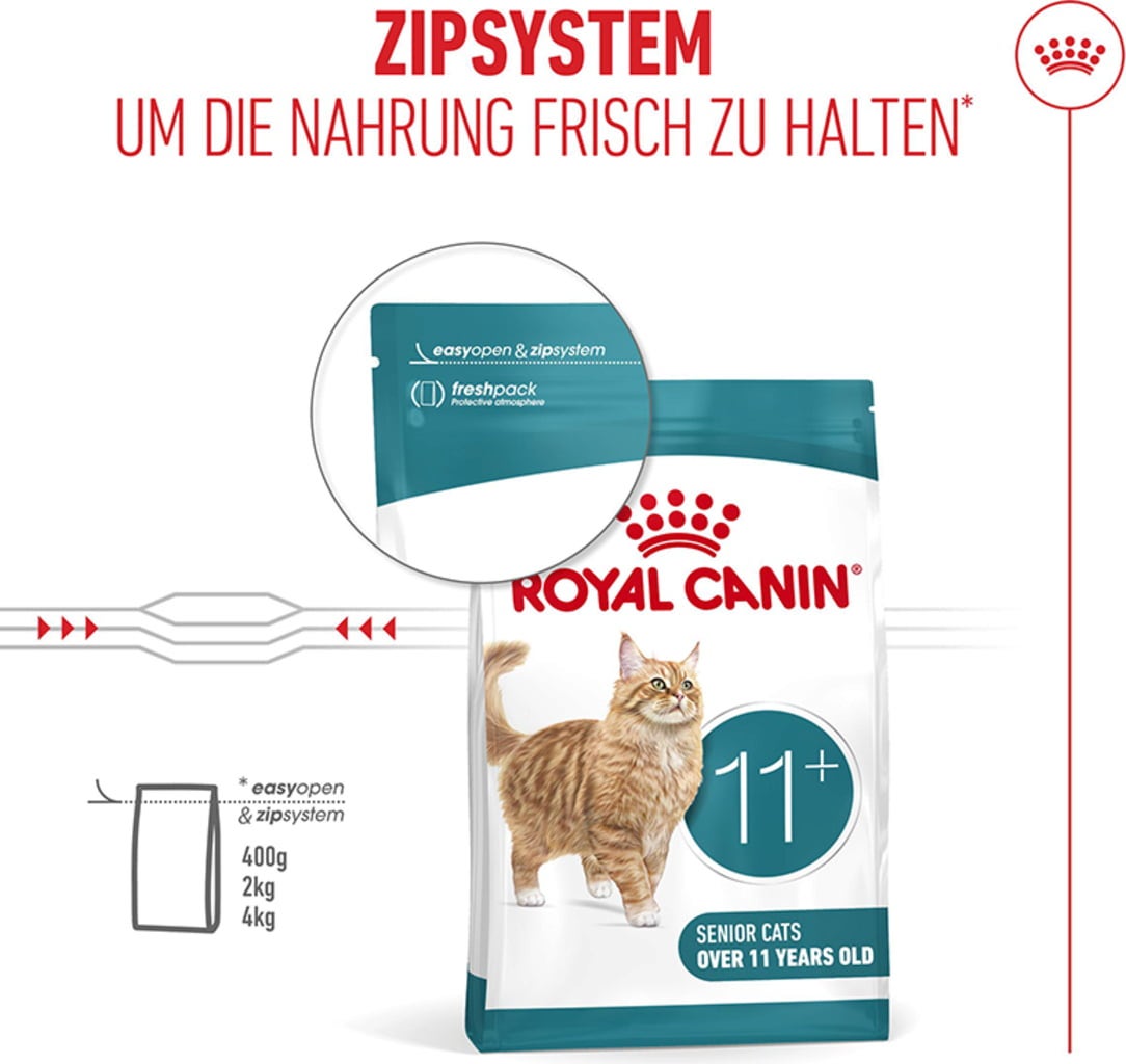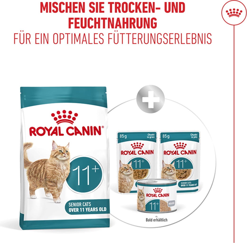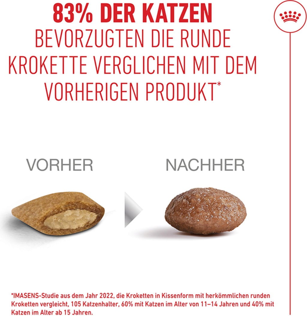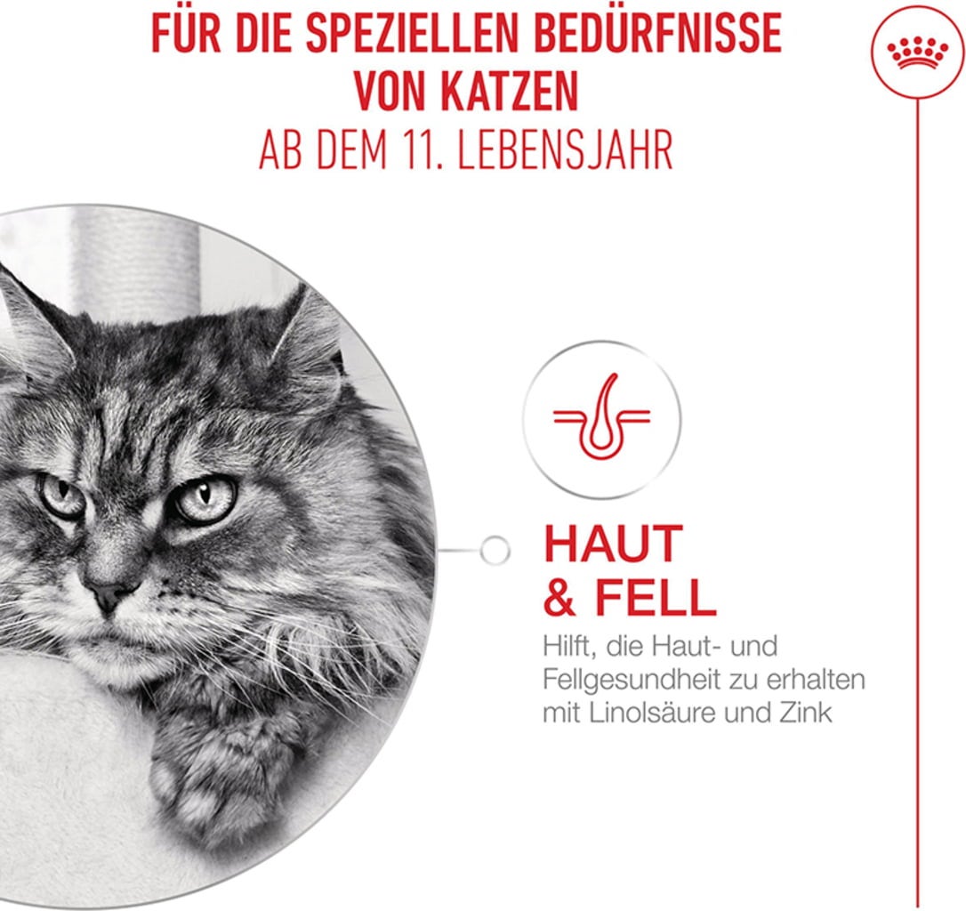 ROYAL CANIN® AGEING 11+ wurde für Senior Katzen entwickelt und von ihnen getestet. Es enthält leicht zu kauende Kroketten, um deiner Katze ein angenehmes Fütterungserlebnis zu bieten.