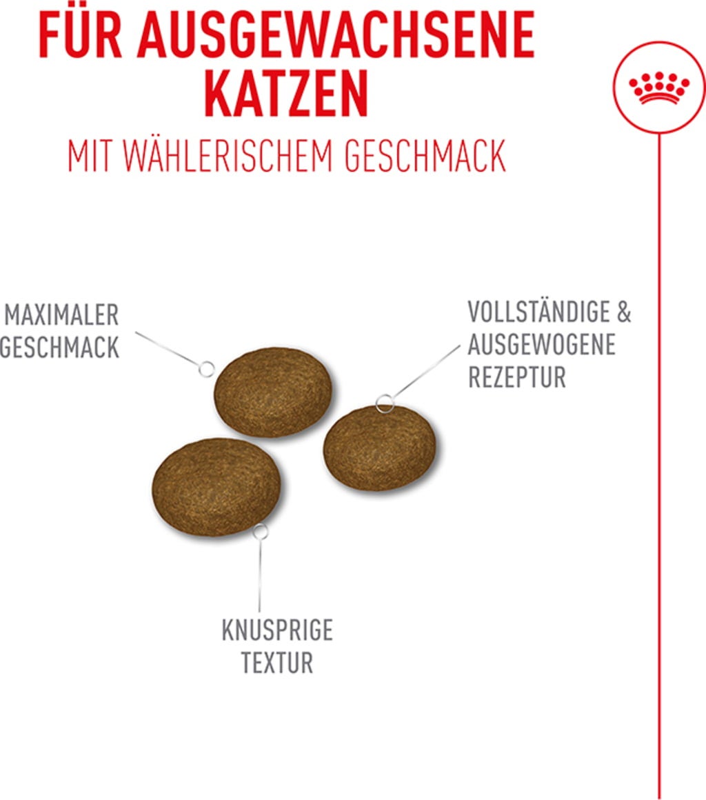 ROYAL CANIN® Fussy wurde sorgfältig auf die besonderen Bedürfnisse von wählerischen Katzen abgestimmt und bietet eine Nahrung, die selbst den wählerischsten Katzen schmeckt.