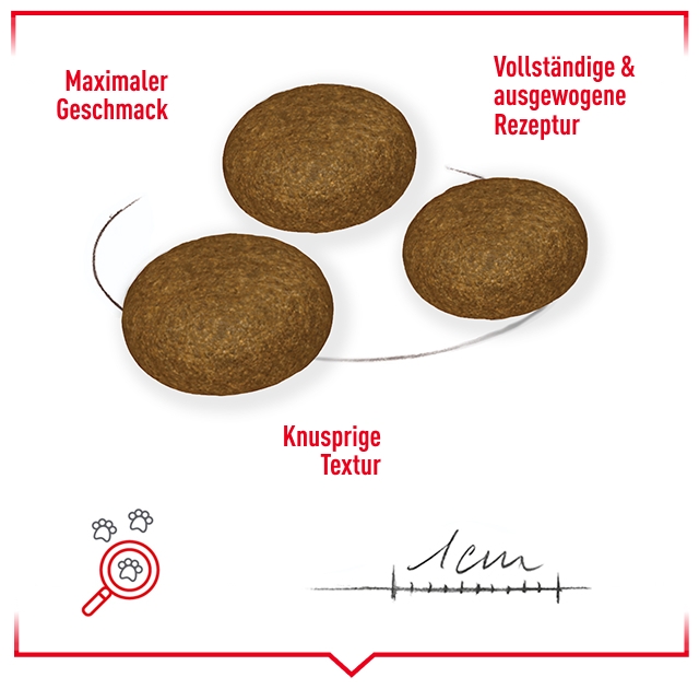 Trockennahrung in angepasster Krokettengröße mit speziell entwickeltem Geschmack für bessere Akzeptanz.