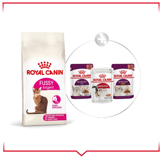 Kombiniere die ROYAL CANIN® FUSSY Trockennahrung mit unseren SENSORYTM oder INSTINCTIVE Feuchtnahrungsvarianten - für eine komplette und ausgewogene Ernährung.