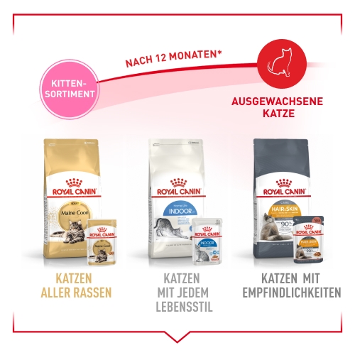 *Große Rassen, wie die Maine Coon, sind mit 15 Monaten ausgewachsen