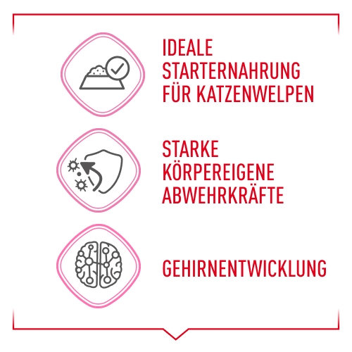 - Unterstützt die Entwicklung der körpereigenen Abwehrkräfte von Katzenwelpen