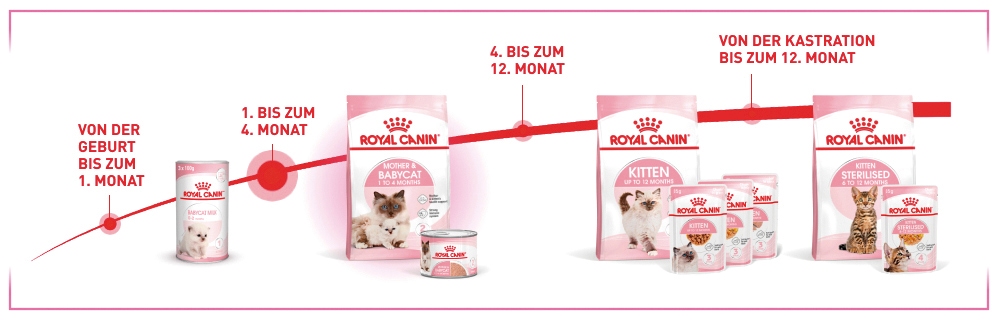 *Große Rassen, wie die Maine Coon, sind mit 15 Monaten ausgewachsen