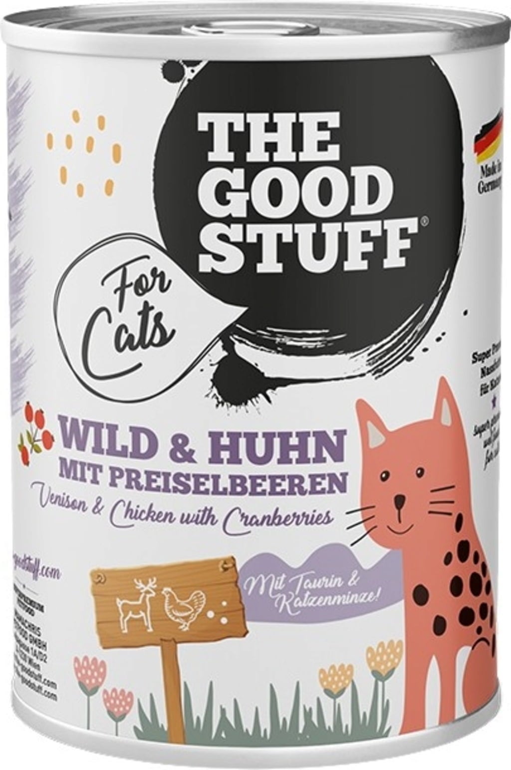 Mit Wild & Huhn mit Preiselbeeren von The Goodstuff gibst du deiner Katze genau das, was sie verdient: ein hochwertiges Nassfutter mit 66 % Fleischanteil, ganz ohne Getreide und Zuckerzusatz. Frisches Wild- und Hühnerfleisch, kombiniert mit Preiselbeeren, sorgt nicht nur für hervorragenden Geschmack, sondern auch für eine Extraportion Nährstoffe.
