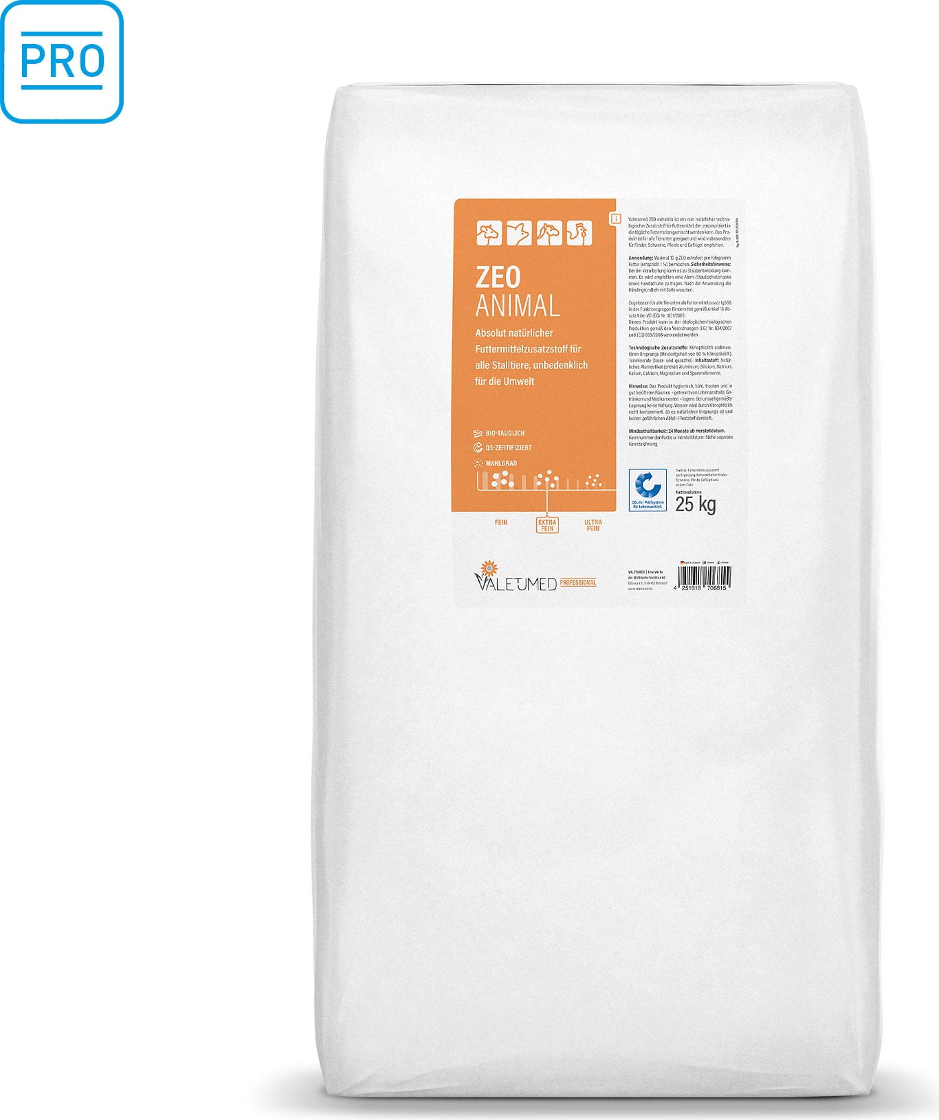 Das Valetumed Professional ZEO ANIMAL extrafein ist ein rein natürlicher technologischer Zusatzstoff für Futtermittel. Das ultrafein gemahlene Pulver lässt sich unkompliziert in die tägliche Futterration mischen und wird zur Anwendung bei Rindern, Schweinen, Pferden und Geflügel empfohlen.